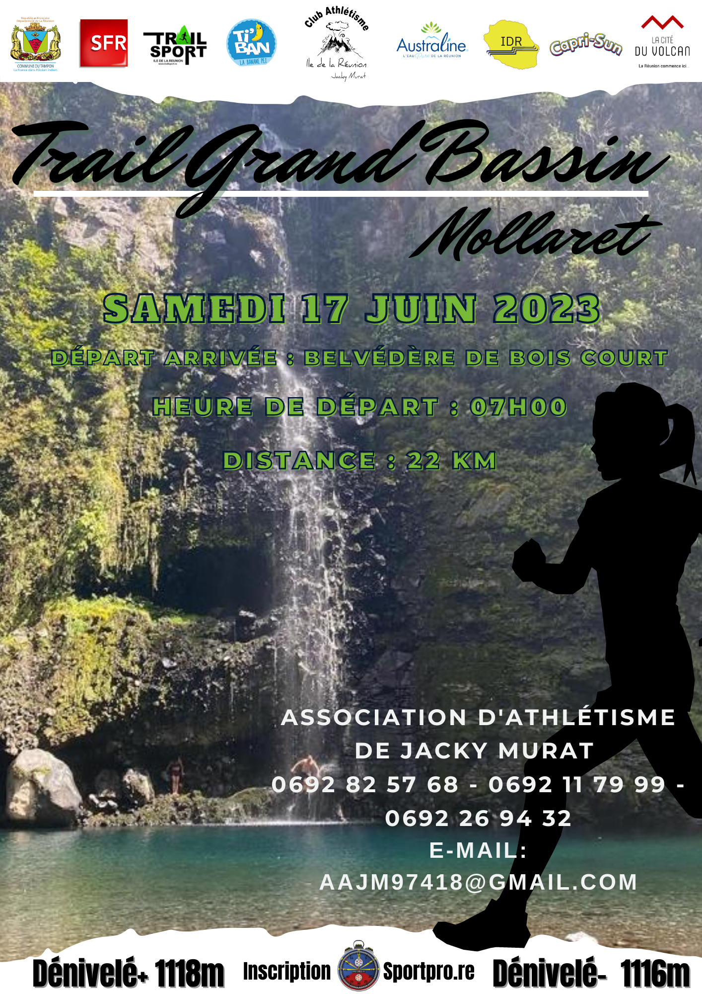 L’Association AAJM organise le samedi 18 Juin 2022 le Trail grand bassin(limité à 500 coureurs), ouvert à tous, licenciés ou non. Ce trail est réservé aux personnes entraînées et en bonne condition physique. La date limite d’inscription est fixée au 12 Juin 2023.
