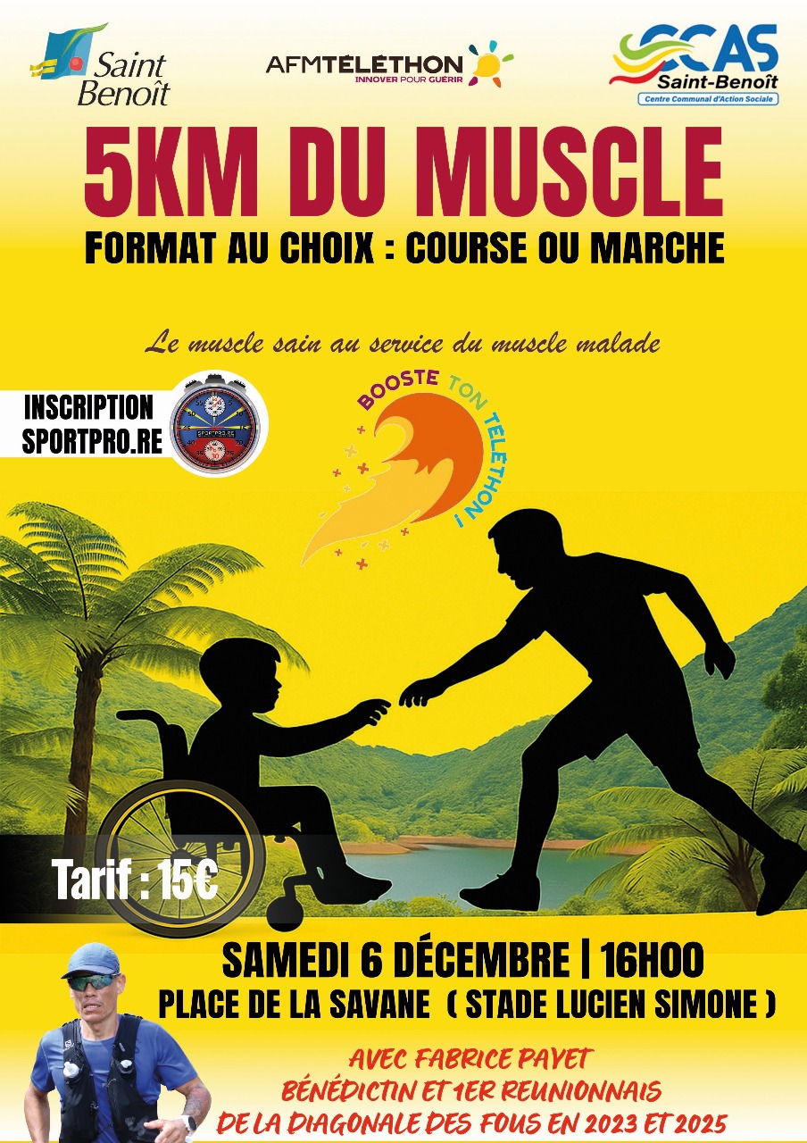 Envie de bouger et de partager un moment sportif et convivial ? Rejoignez-nous le 6 décembre à 16h pour les 5 km du Muscle, une course ou marche ouverte à tous !
